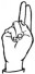 На ћирилици написано ДИНА ГАЋЕ састоји се из 8 слова [?]. Исписано ћириличном једноручном азбуком за глувонеме: